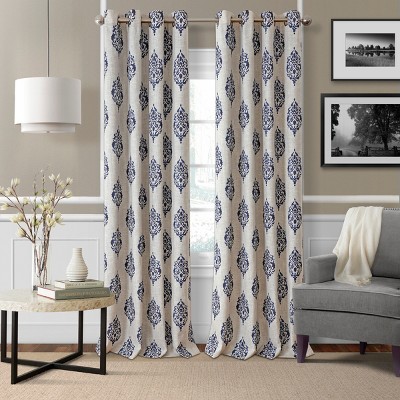 Navara Medallion Room Darkening Window Curtain Panel 52 X 84 Navy Elrene Home Fashions Target